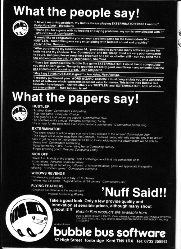 - Full-page ad -Ocean Software - The sky's the limit!! ... for fun and excitement with these cracking new stunners from Ocean. 9