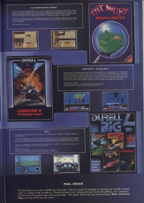 - Two-page ad -Durell Software - Thanatos + Deep Strike + Sigma 7 + Fat Worm Blows A Sparky + Saboteur II + Big 4 58