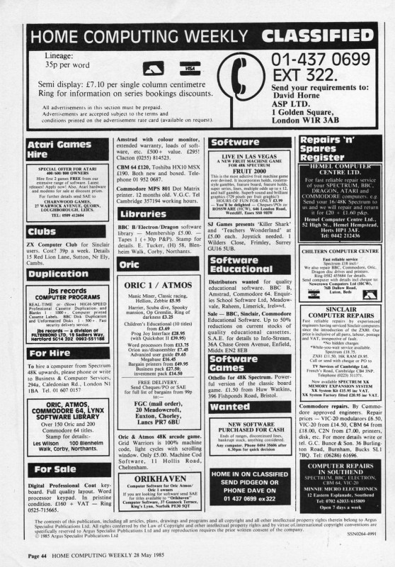 Magazine : Home Computing Weekly (English) Issue : 114 Date: Date: 28/5/1985 Medium : Paper Updated On : 2020-06-04 01:42:49 Pages Page: 1 Page: 2 Page: 3 Page: 4 Page: 5 Page: 6 Page: 7 Page: 8 Page: 9 Page: 10 Page: 11 Page: 12 Page: 13 Page: 14 Page: 15 Page: 16 Page: 17 Page: 18 Page: 19 Page: 20 Page: 21 Page: 22 Page: 23 Page: 24 Page: 25 Page: 26 Page: 27 Page: 28 Page: 29 Page: 30 Page: 31 Page: 32 Page: 33 Page: 34 Page: 35 Page: 36 Page: 37 Page: 38 Page: 39 Page: 40 Page: 41 Page: 42 Page: 43 Page: 44 Page: 45 Page: 46 Page: 47 Page: 48 Change Request You can request changes or additions here. You can upload files. All change requests are actioned as quickly as possible and you will be informed of the result. Details Files Your Name * Email * Details Your browser doesn't have Flash, Silverlight or HTML5 support. Submit Thank you for your change request. We will respond as soon as possible.
