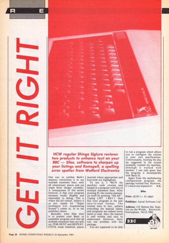 Magazine : Home Computing Weekly (English) Issue : 131 Date: Date: 24/9/1985 Medium : Paper Updated On : 2020-06-04 01:42:49 Pages Page: 1 Page: 2 Page: 3 Page: 4 Page: 5 Page: 6 Page: 7 Page: 8 Page: 9 Page: 10 Page: 11 Page: 12 Page: 13 Page: 14 Page: 15 Page: 16 Page: 17 Page: 18 Page: 19 Page: 20 Page: 21 Page: 22 Page: 23 Page: 24 Page: 25 Page: 26 Page: 27 Page: 28 Page: 29 Page: 30 Page: 31 Page: 32 Page: 33 Page: 34 Page: 35 Page: 36 Page: 37 Page: 38 Page: 39 Page: 40 Change Request You can request changes or additions here. You can upload files. All change requests are actioned as quickly as possible and you will be informed of the result. Details Files Your Name * Email * Details Your browser doesn't have Flash, Silverlight or HTML5 support. Submit Thank you for your change request. We will respond as soon as possible.