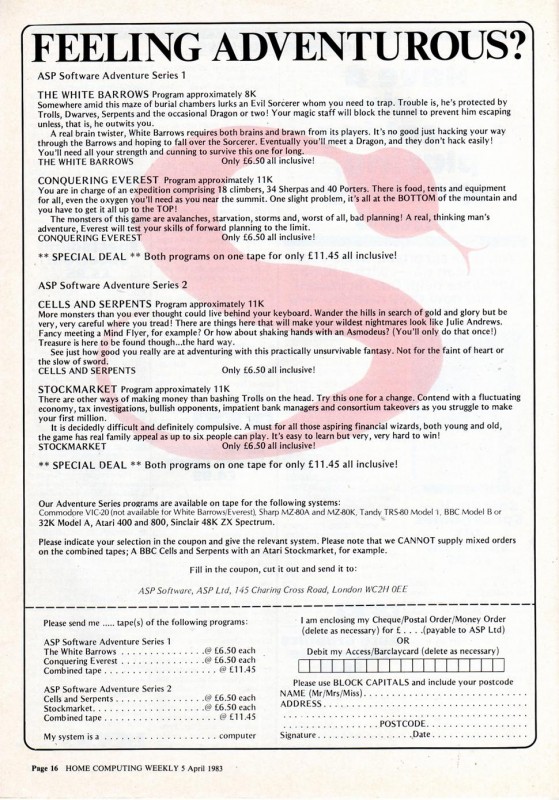 Magazine : Home Computing Weekly (English) Issue : 5 Date: Date: 5/4/1983 Medium : Paper Updated On : 2020-06-04 01:42:49 Pages Page: 1 Page: 2 Page: 3 Page: 4 Page: 5 Page: 6 Page: 7 Page: 8 Page: 9 Page: 10 Page: 11 Page: 12 Page: 13 Page: 14 Page: 15 Page: 16 Page: 17 Page: 18 Page: 19 Page: 20 Page: 21 Page: 22 Page: 23 Page: 24 Page: 25 Page: 26 Page: 27 Page: 28 Page: 29 Page: 30 Page: 31 Page: 32 Page: 33 Page: 34 Page: 35 Page: 36 Page: 37 Page: 38 Page: 39 Page: 40 Page: 41 Page: 42 Page: 43 Page: 44 Page: 45 Page: 46 Page: 47 Page: 48 Change Request You can request changes or additions here. You can upload files. All change requests are actioned as quickly as possible and you will be informed of the result. Details Files Your Name * Email * Details Your browser doesn't have Flash, Silverlight or HTML5 support. Submit Thank you for your change request. We will respond as soon as possible.