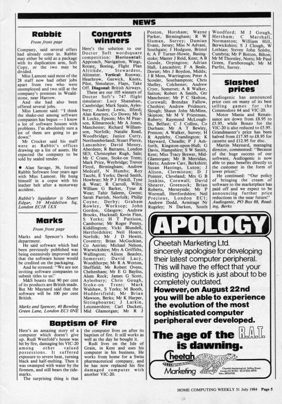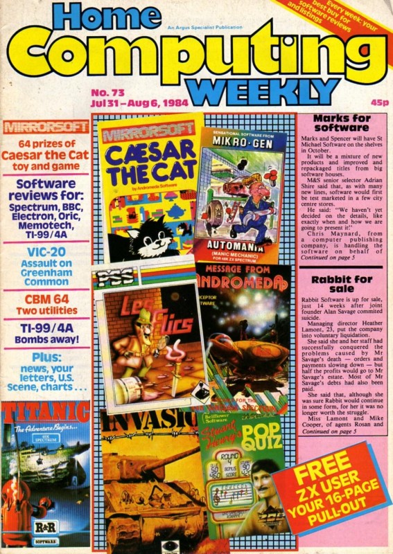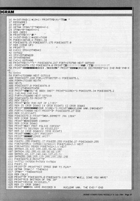 Magazine : Home Computing Weekly (English) Issue : 73 Date: Date: 31/7/1984 Medium : Paper Updated On : 2020-06-04 01:42:49 Pages Page: 1 Page: 2 Page: 3 Page: 4 Page: 5 Page: 6 Page: 7 Page: 8 Page: 9 Page: 10 Page: 11 Page: 12 Page: 13 Page: 14 Page: 15 Page: 16 Page: 17 Page: 18 Page: 19 Page: 20 Page: 21 Page: 22 Page: 23 Page: 24 Page: 25 Page: 26 Page: 27 Page: 28 Page: 29 Page: 30 Page: 31 Page: 32 Change Request You can request changes or additions here. You can upload files. All change requests are actioned as quickly as possible and you will be informed of the result. Details Files Your Name * Email * Details Your browser doesn't have Flash, Silverlight or HTML5 support. Submit Thank you for your change request. We will respond as soon as possible.