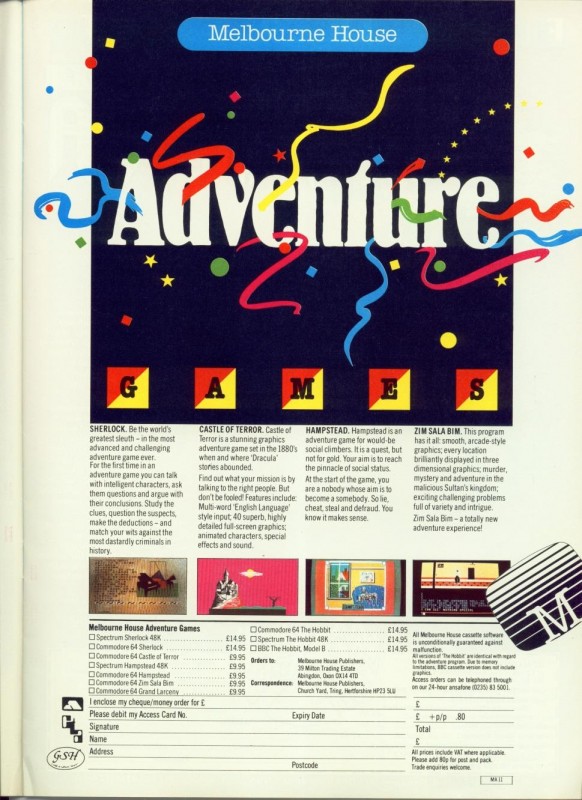- Full-page ad -Melbourne House - Adventure GAMES Sherlock + Hampstead [+ Castle of Terror + Zim Sala Bim] 23