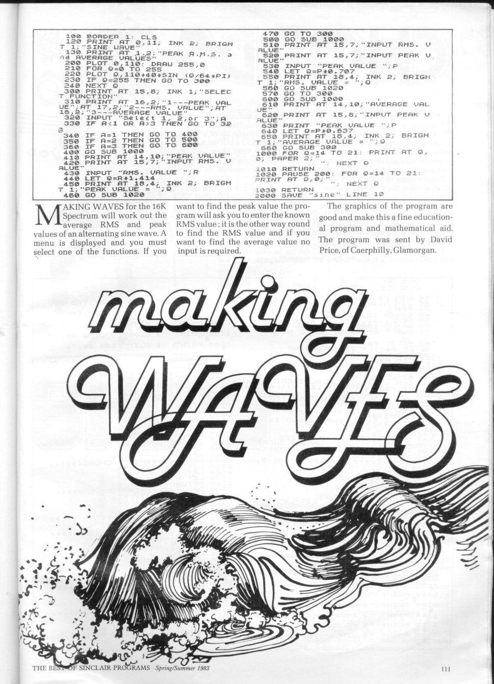 Magazine : Best Of Sinclair Programs (English) Issue : 1983 Page : 111 Date: June 1983 Medium : Paper Updated On : 2020-06-04 04:32:39 Hi-res : No 12...109110111112113...131132