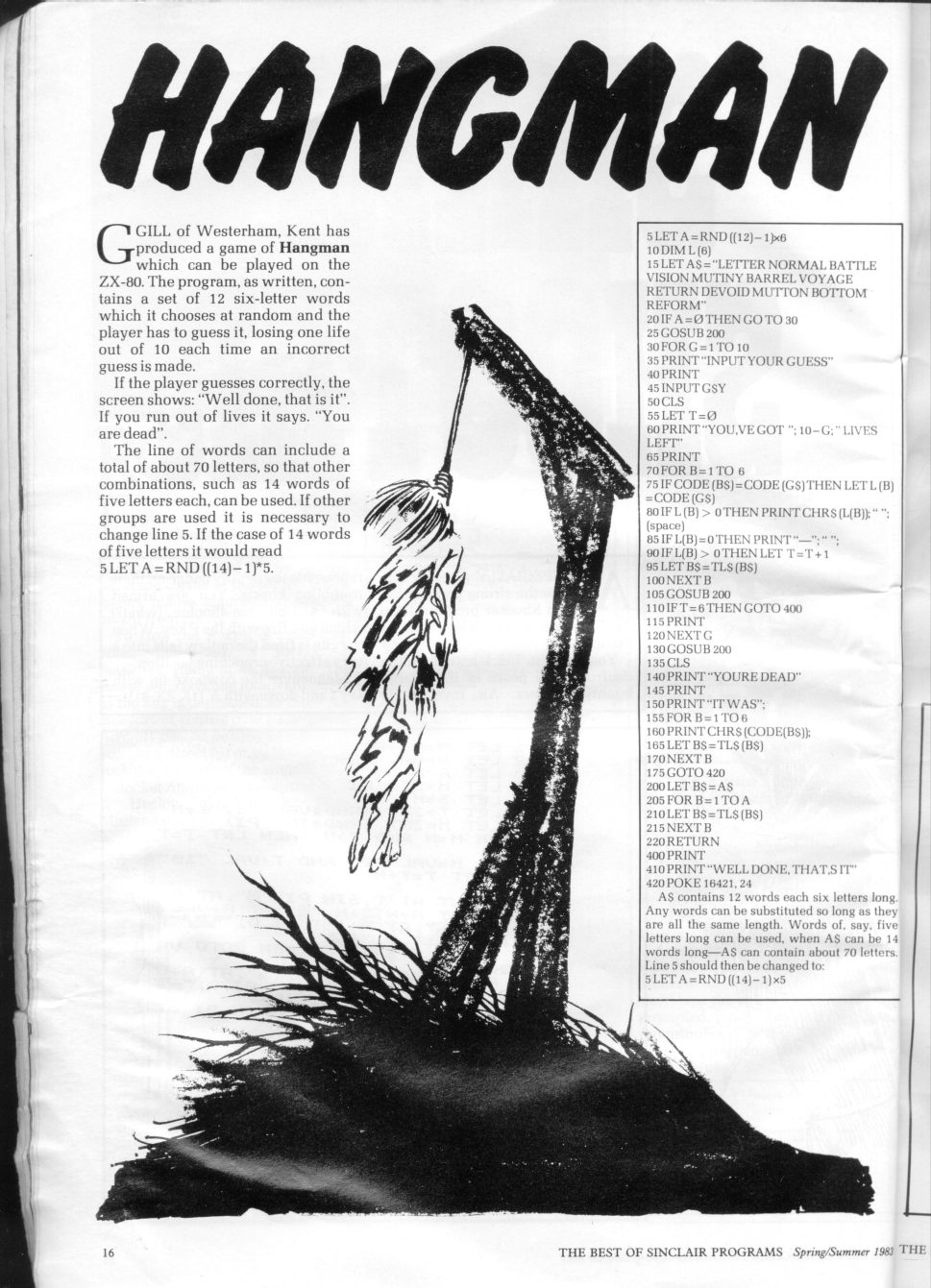 Magazine : Best Of Sinclair Programs (English) Issue : 1983 Page : 16 Date: June 1983 Medium : Paper Updated On : 2020-06-04 04:32:35 Hi-res : No 12...1415161718...131132
