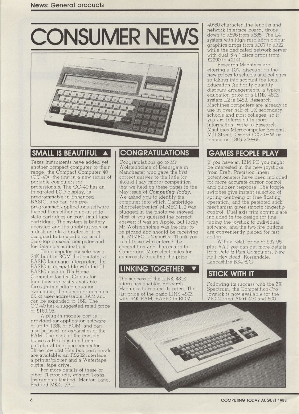 Magazine : Computing Today (English) Issue : 6 Page : 6 Date: August 1983 Volume: 5 Medium : Paper Updated On : 2020-06-04 02:44:39 Hi-res : No 12...45678...7576