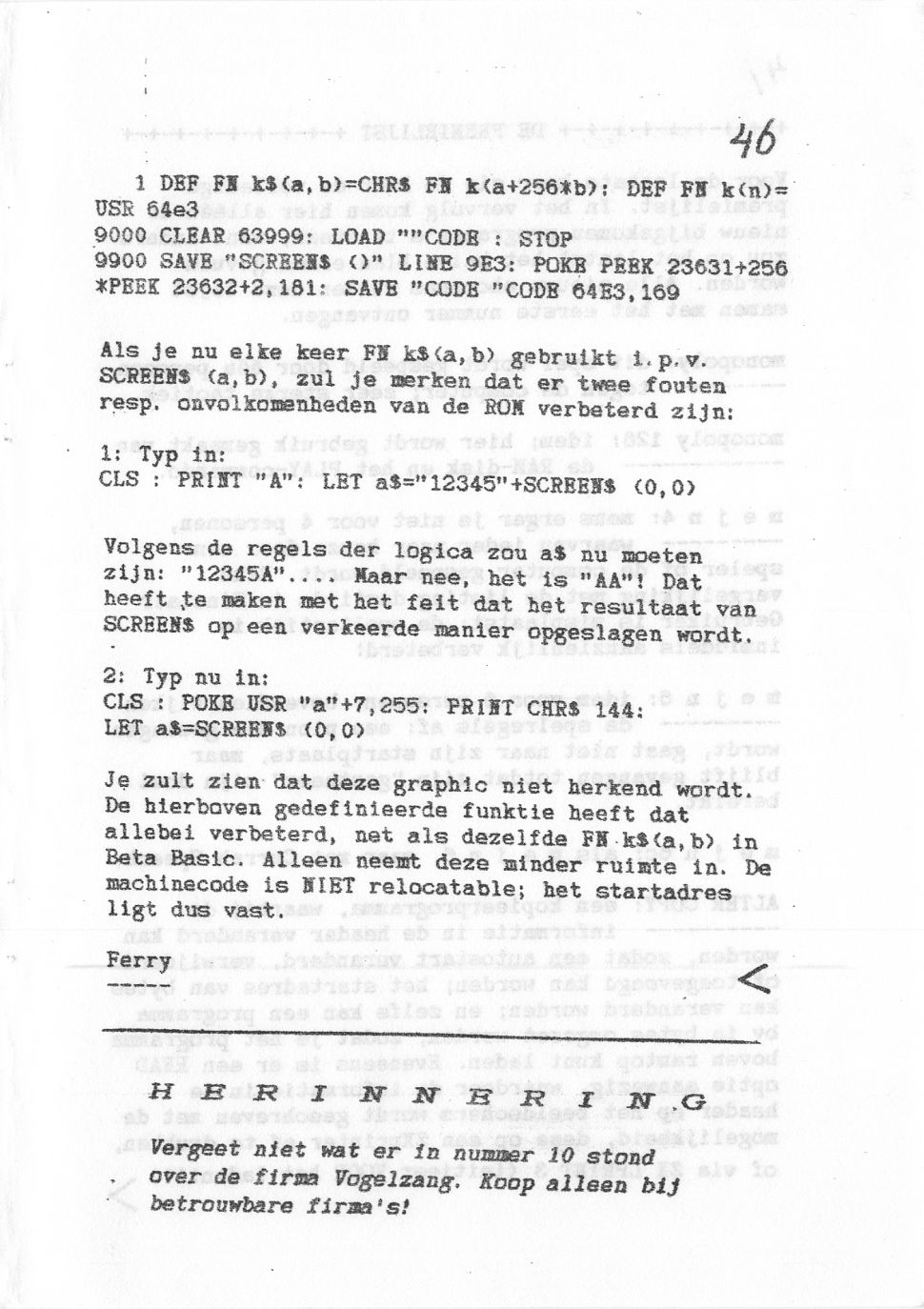 Magazine : Het Computerblad SPECTRUM (Dutch) Issue : 11 Page : 47 Date: Volume: 1 Medium : Paper Updated On : 2020-06-04 03:04:46 Hi-res : No 12...4546474849...6768