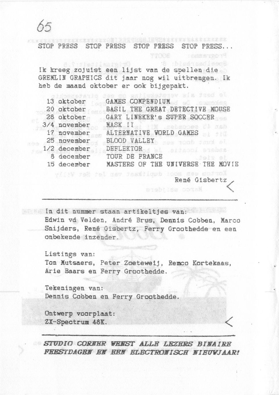 Magazine : Het Computerblad SPECTRUM (Dutch) Issue : 11 Page : 66 Date: Volume: 1 Medium : Paper Updated On : 2020-06-04 03:04:47 Hi-res : No 12...62636465666768
