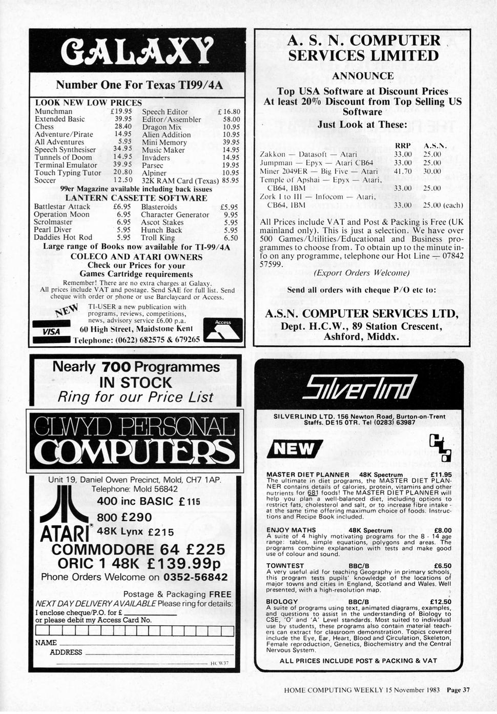 Magazine : Home Computing Weekly (English) Issue : 37 Page : 37 Date: Date: 15/11/1983 Medium : Paper Updated On : 2020-06-04 03:16:41 Hi-res : No 12...3536373839...5556