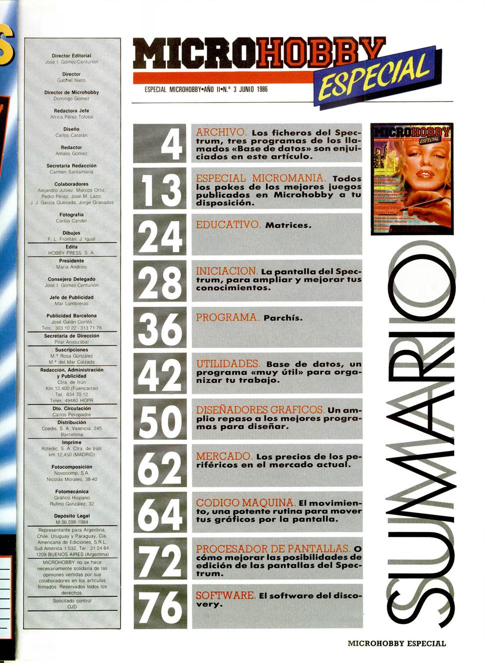 Magazine : MicroHobby Especial (Spanish) Issue : 3 Page : 3 Date: June 1986 Medium : Paper Updated On : 2020-06-04 03:48:58 Hi-res : No 12345...8384