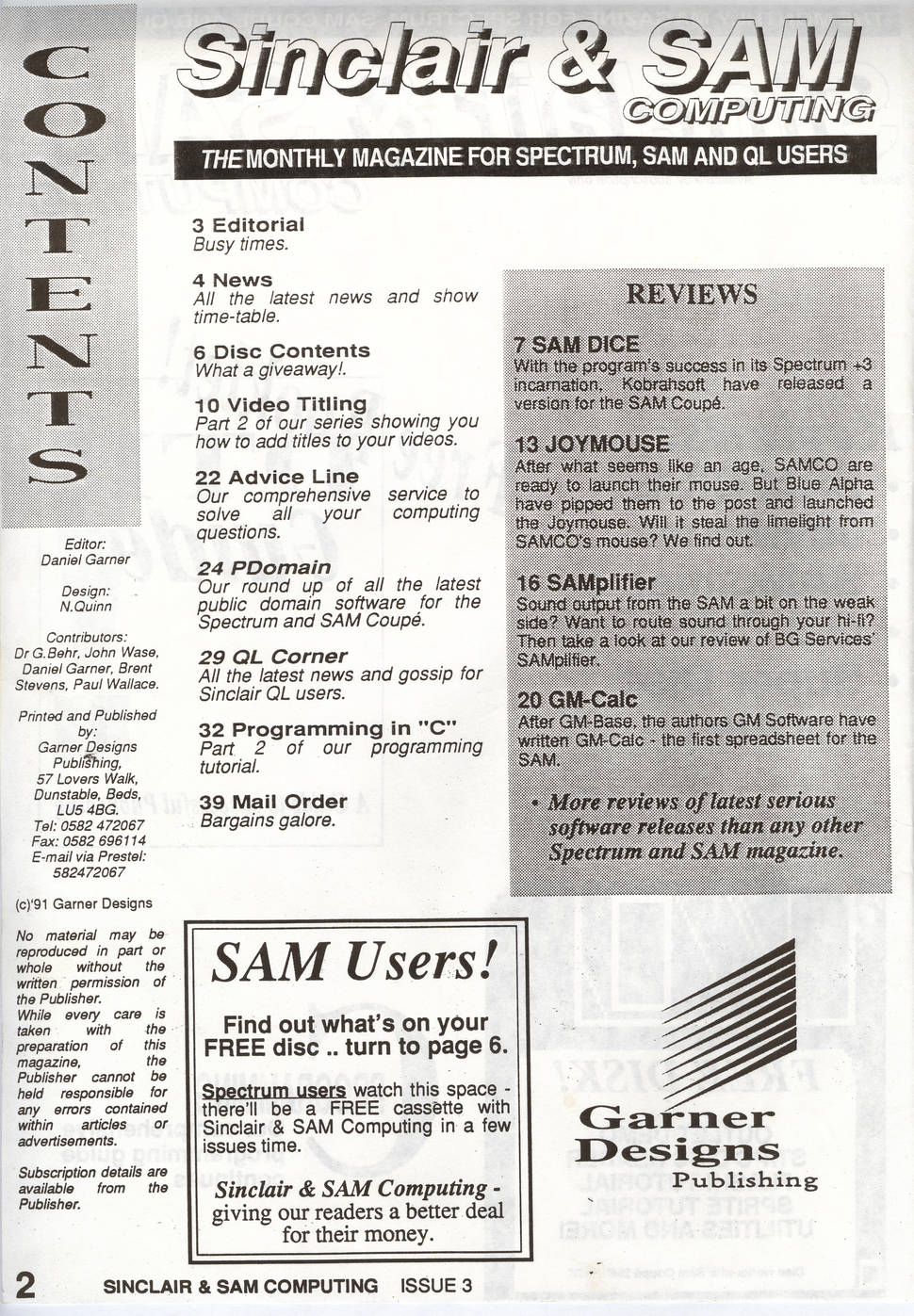 Magazine : Sinclair & Sam Computing (English) Issue : 3 Page : 2 Date: June 1991 Medium : Paper Updated On : 2020-06-04 04:29:59 Hi-res : No 12345...3940