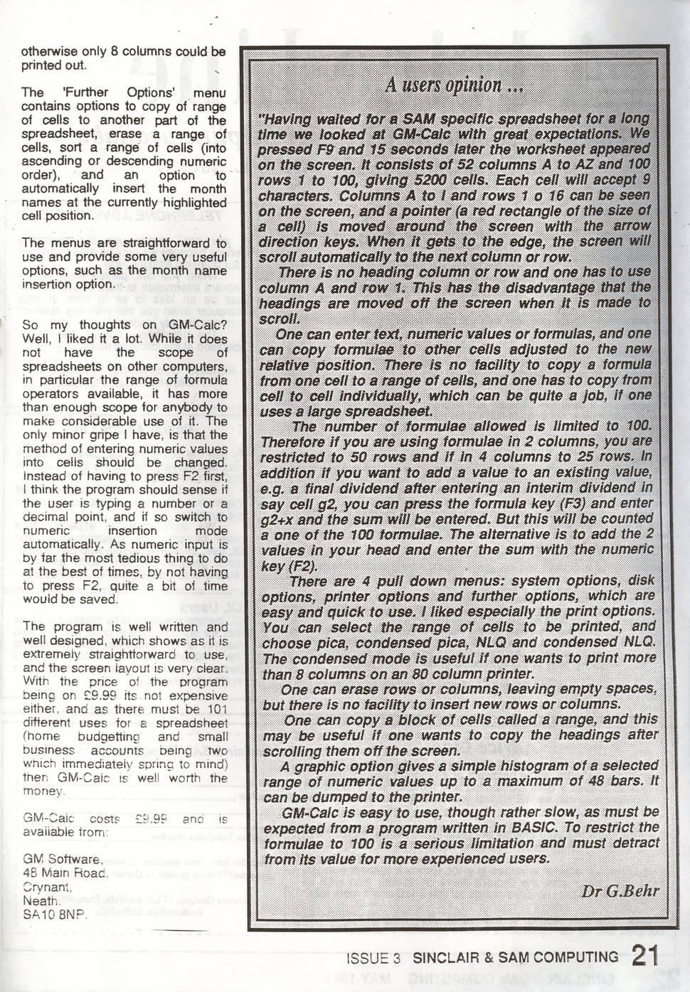 Magazine : Sinclair & Sam Computing (English) Issue : 3 Page : 21 Date: June 1991 Medium : Paper Updated On : 2020-06-04 04:30:00 Hi-res : No 12...1920212223...3940