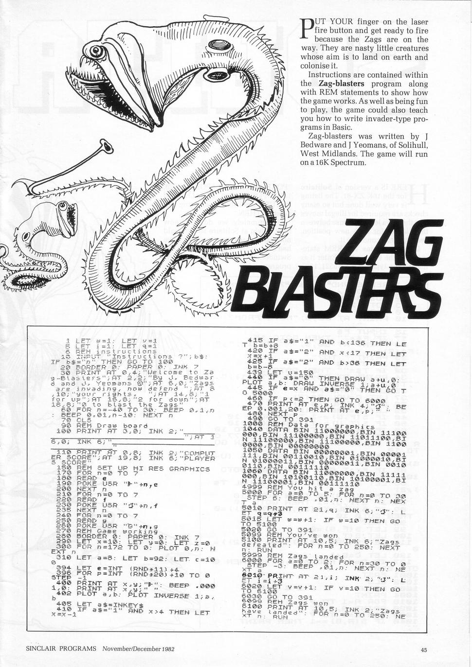 Magazine : Sinclair Programs (English) Issue : 4 Page : 45 Date: November 1982 Medium : Paper Updated On : 2020-06-04 04:32:56 Hi-res : No 12...4344454647...5152