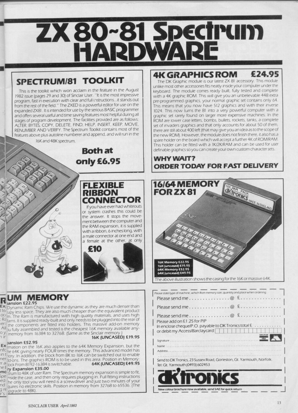 Magazine : Sinclair User (English) Issue : 13 Page : 13 Date: April 1983 Medium : Paper Updated On : 2020-06-04 04:46:12 Hi-res : No Adverts Advert ZXED Advert Memory Expansion Kits 12...1112131415...99100