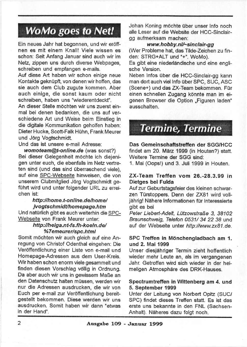 Magazine : SPC Magazin (German) Issue : 109 Page : 2 Date: January 1999 Medium : Paper Updated On : 2020-06-04 04:58:29 Hi-res : No 12345...1516