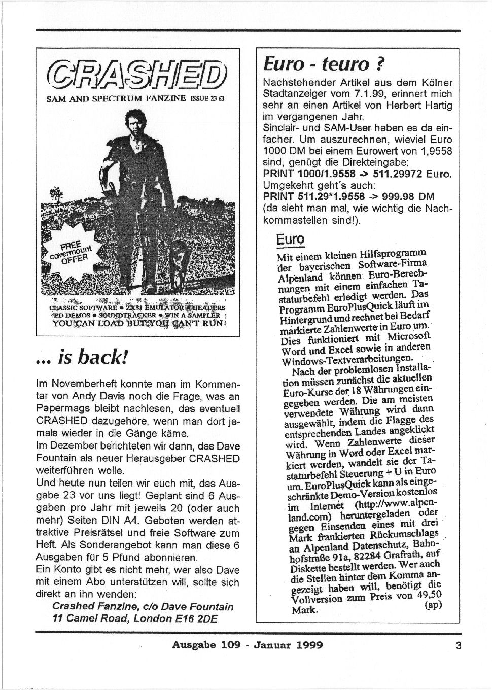 Magazine : SPC Magazin (German) Issue : 109 Page : 3 Date: January 1999 Medium : Paper Updated On : 2020-06-04 04:58:29 Hi-res : No 12345...1516