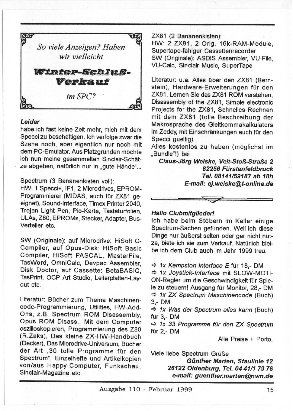 Magazine : SPC Magazin (German) Issue : 110 Page : 15 Date: February 1999 Medium : Paper Updated On : 2020-06-04 04:58:31 Hi-res : No 12...10111213141516