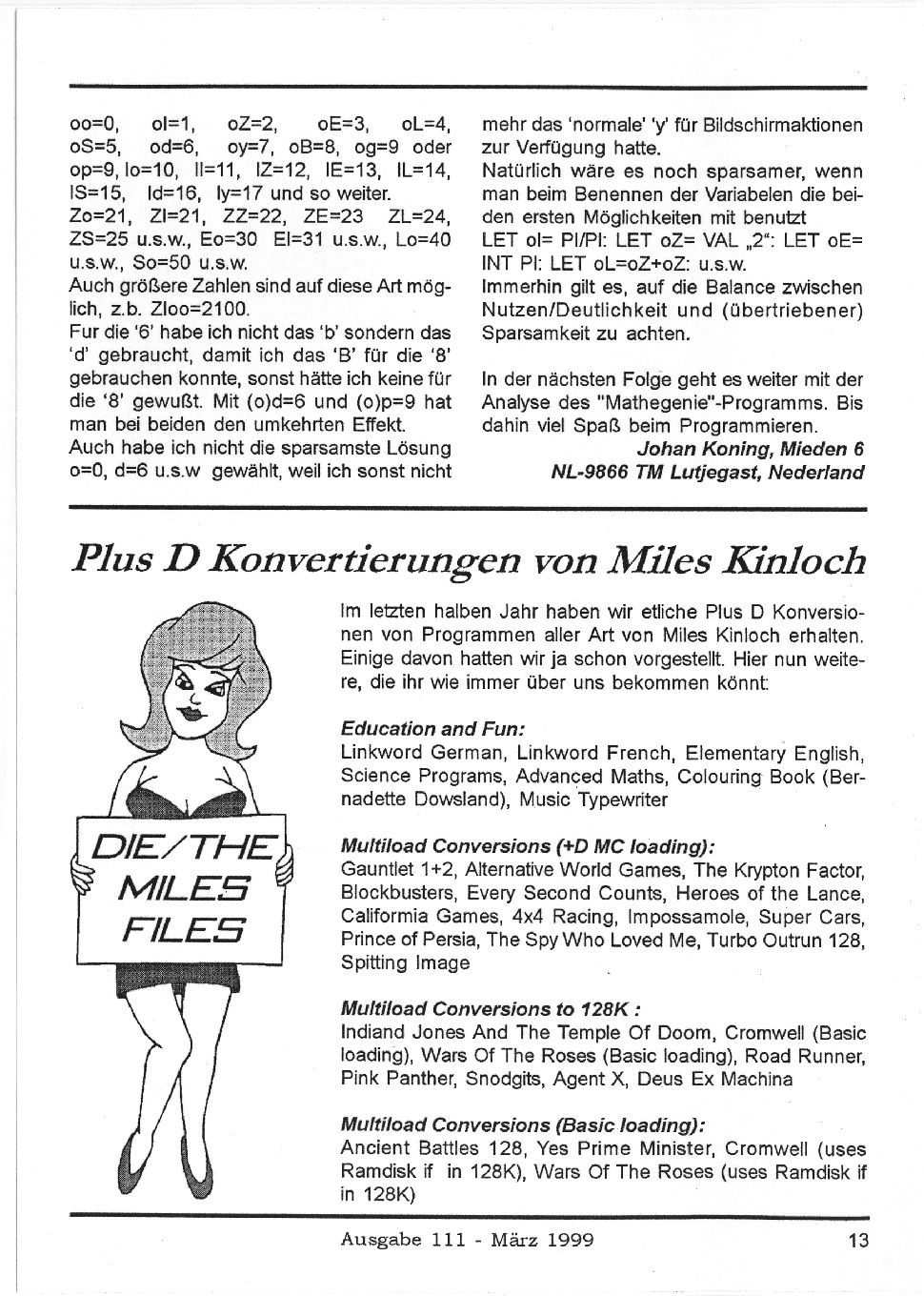 Magazine : SPC Magazin (German) Issue : 111 Page : 13 Date: March 1999 Medium : Paper Updated On : 2020-06-04 04:58:31 Hi-res : No 12...10111213141516