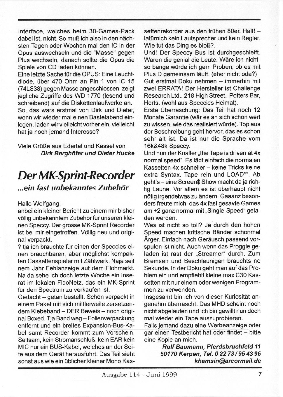 Magazine : SPC Magazin (German) Issue : 114 Page : 7 Date: June 1999 Medium : Paper Updated On : 2020-06-04 04:58:33 Hi-res : No 12...56789...1920