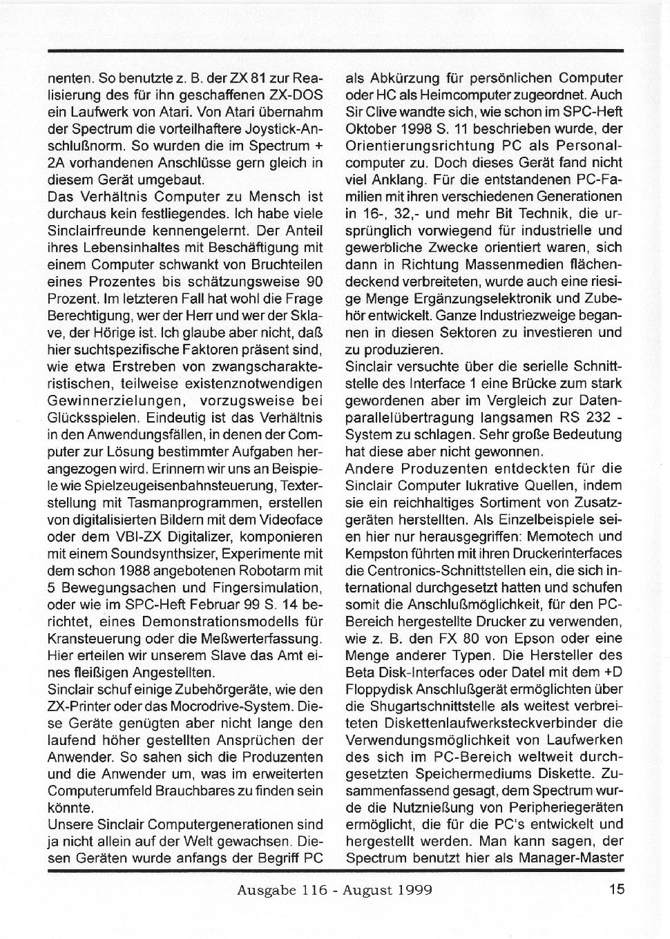 Magazine : SPC Magazin (German) Issue : 116 Page : 15 Date: August 1999 Medium : Paper Updated On : 2020-06-04 04:58:35 Hi-res : No 12...1314151617...1920