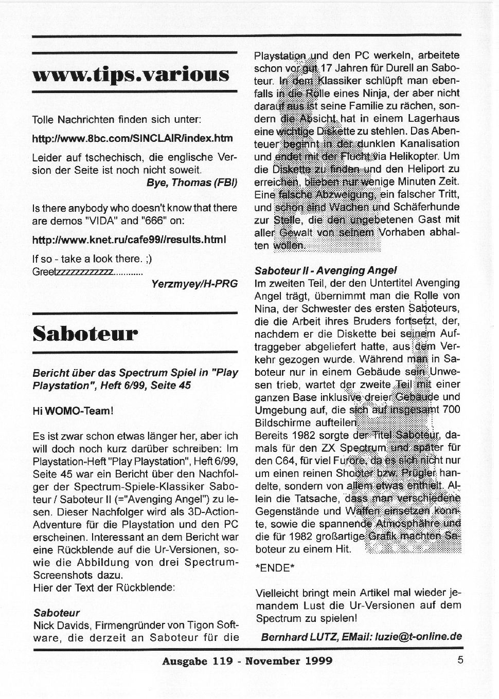 Magazine : SPC Magazin (German) Issue : 119 Page : 5 Date: November 1999 Medium : Paper Updated On : 2020-06-04 04:58:37 Hi-res : No 12...34567...1516
