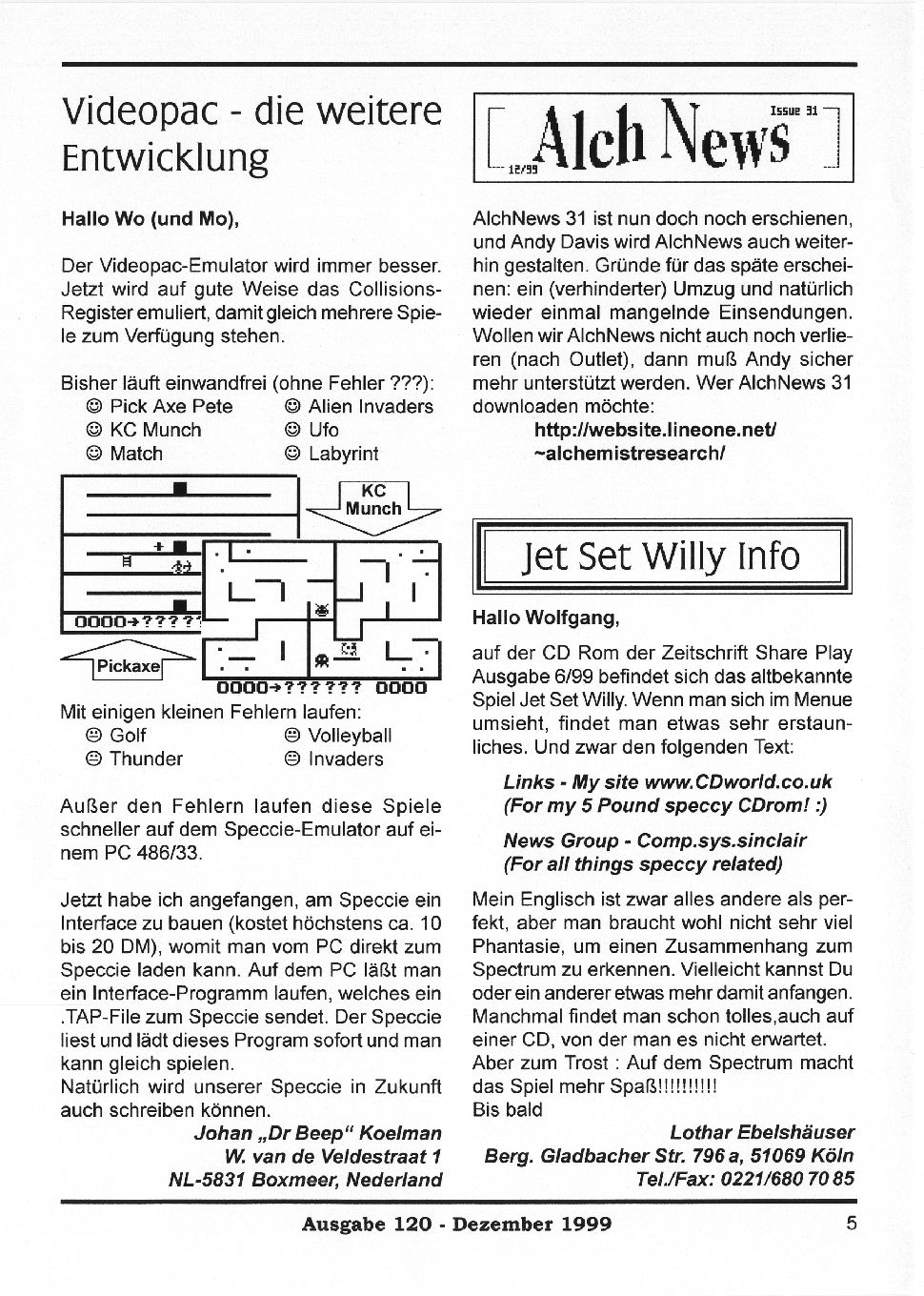 Magazine : SPC Magazin (German) Issue : 120 Page : 5 Date: December 1999 Medium : Paper Updated On : 2020-06-04 04:58:37 Hi-res : No 12...34567...1516