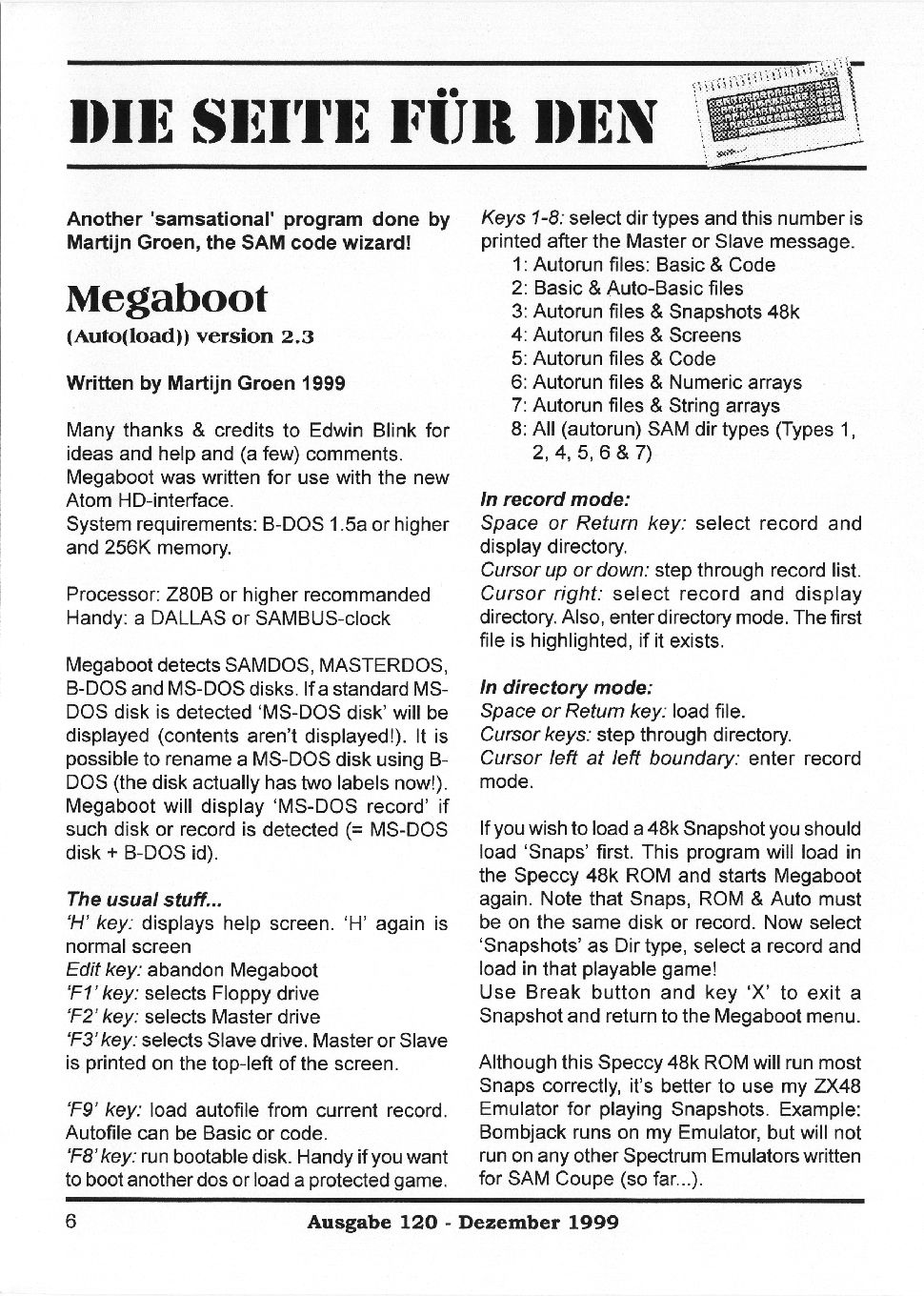 Magazine : SPC Magazin (German) Issue : 120 Page : 6 Date: December 1999 Medium : Paper Updated On : 2020-06-04 04:58:37 Hi-res : No 12...45678...1516