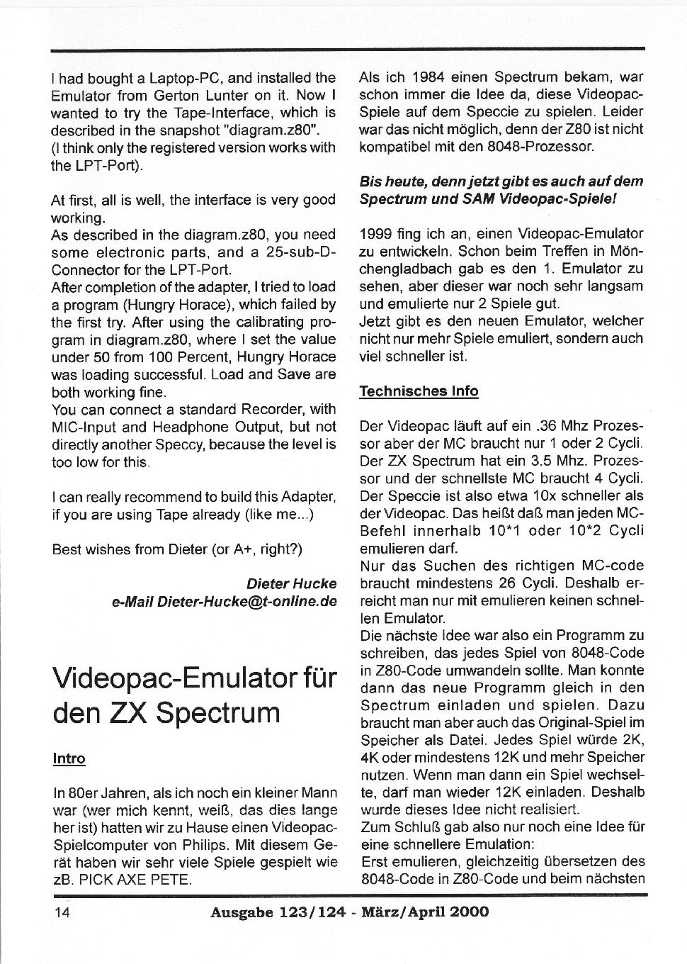 Magazine : SPC Magazin (German) Issue : 123 Page : 14 Date: March 2000 Medium : Paper Updated On : 2020-06-04 04:58:41 Hi-res : No 12...1213141516...3132