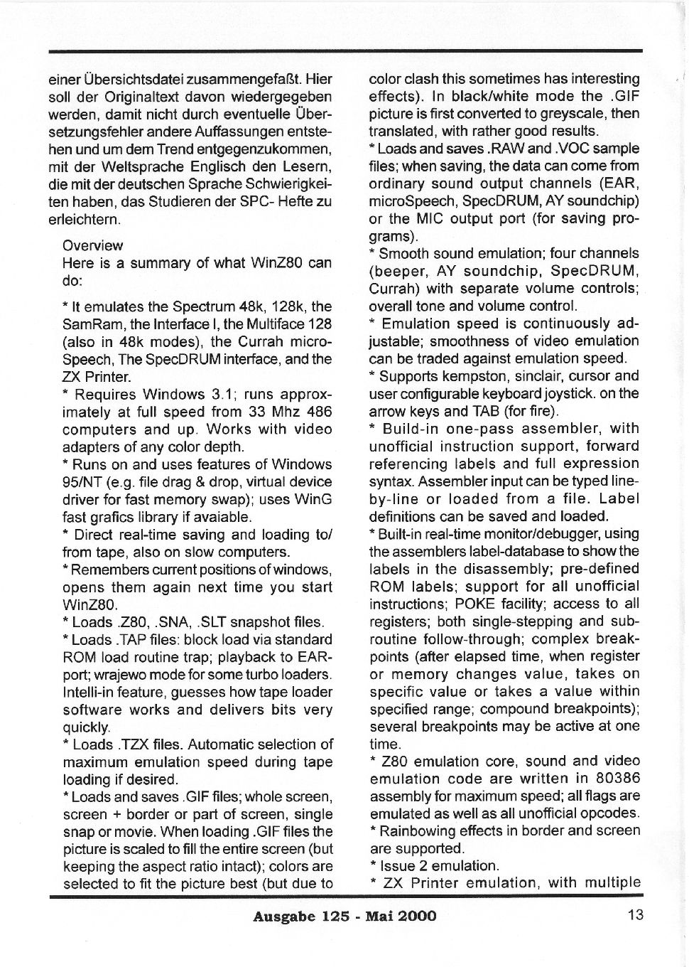Magazine : SPC Magazin (German) Issue : 125 Page : 13 Date: May 2000 Medium : Paper Updated On : 2020-06-04 04:58:42 Hi-res : No 12...1112131415...2728