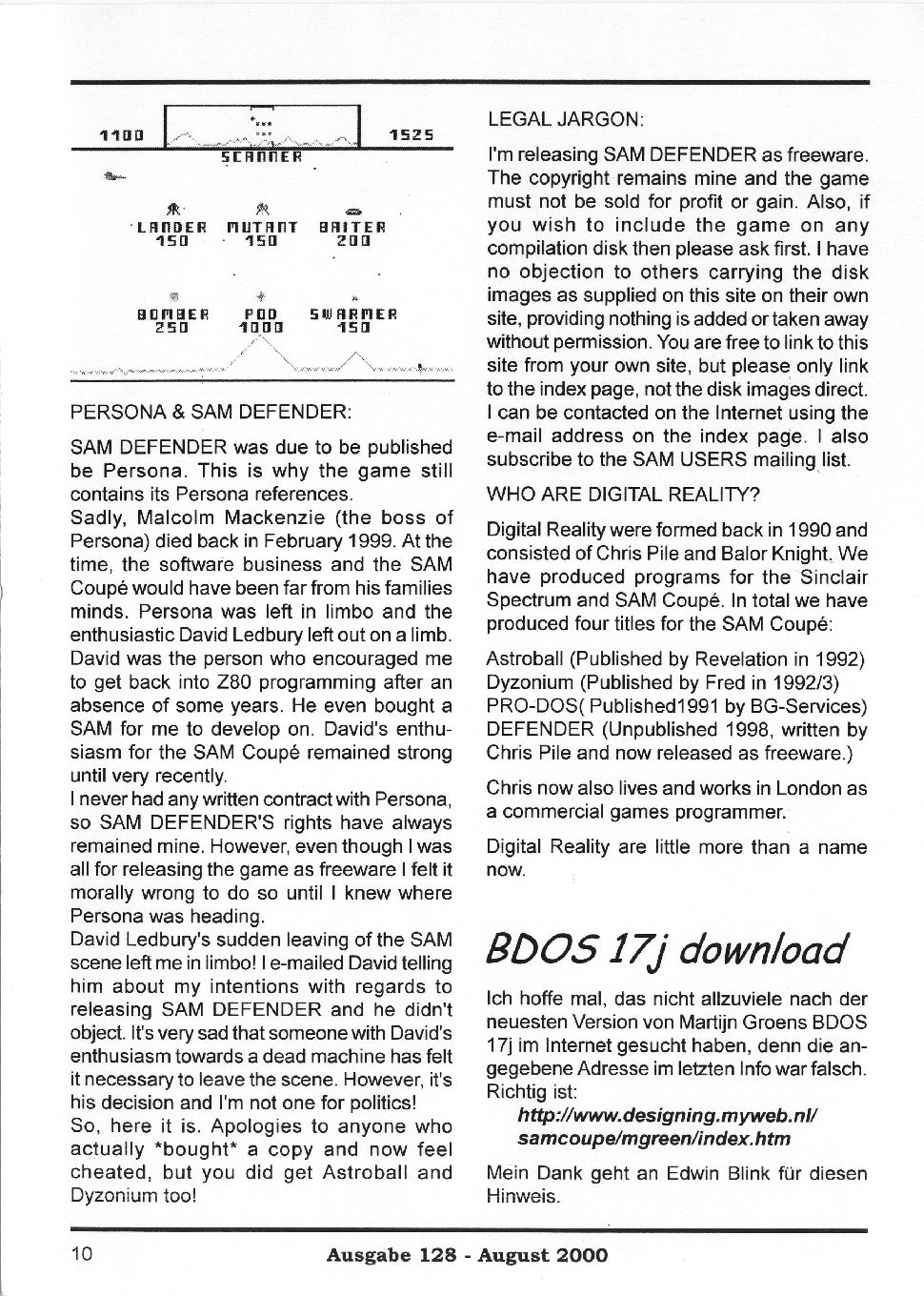 Magazine : SPC Magazin (German) Issue : 128 Page : 10 Date: August 2000 Medium : Paper Updated On : 2020-06-04 04:58:46 Hi-res : No 12...89101112...2324