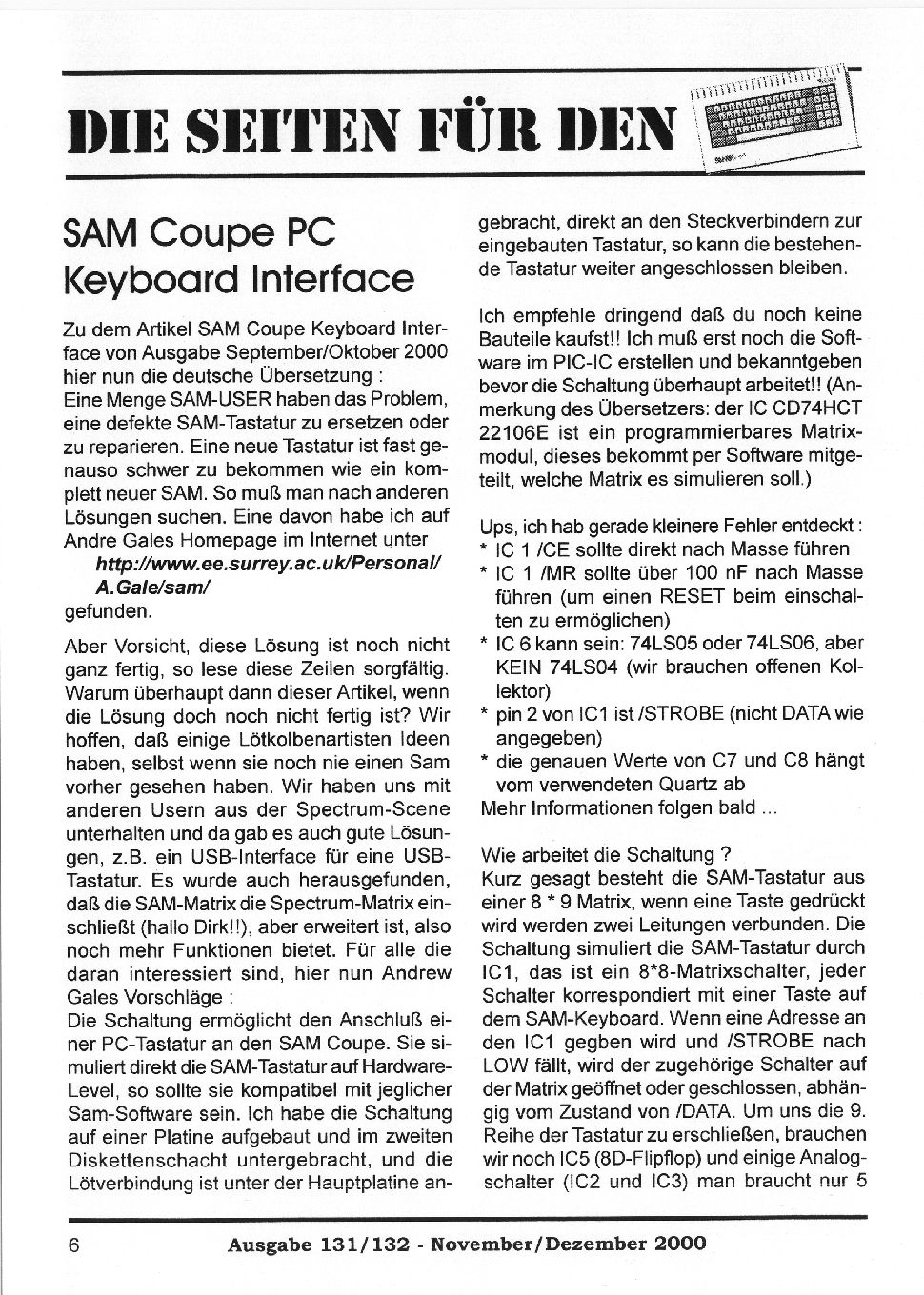 Magazine : SPC Magazin (German) Issue : 131 Page : 6 Date: November 2000 Medium : Paper Updated On : 2020-06-04 04:58:48 Hi-res : No 12...45678...2324