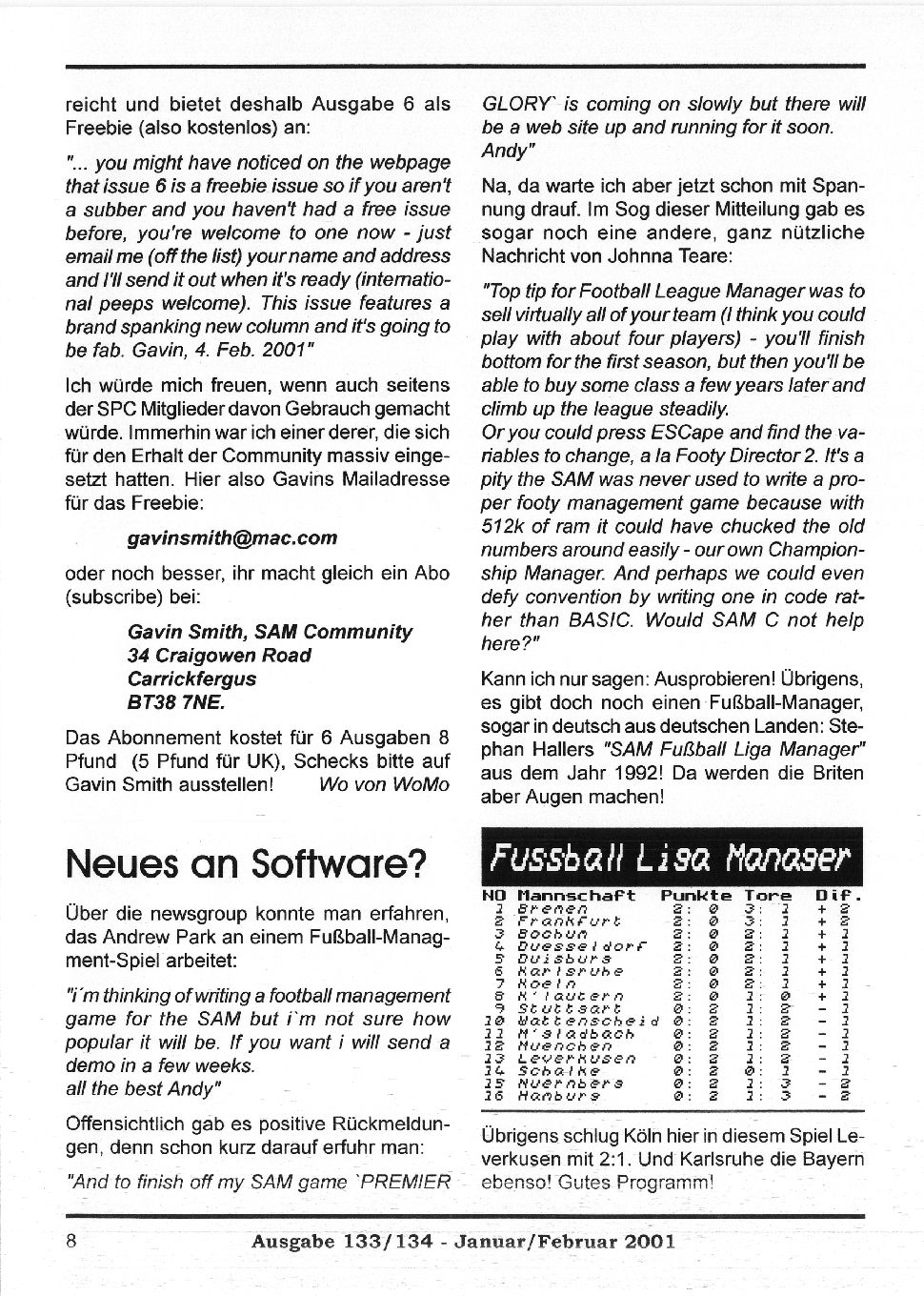 Magazine : SPC Magazin (German) Issue : 133 Page : 8 Date: January 2001 Medium : Paper Updated On : 2020-06-04 04:58:50 Hi-res : No 12...678910...3132