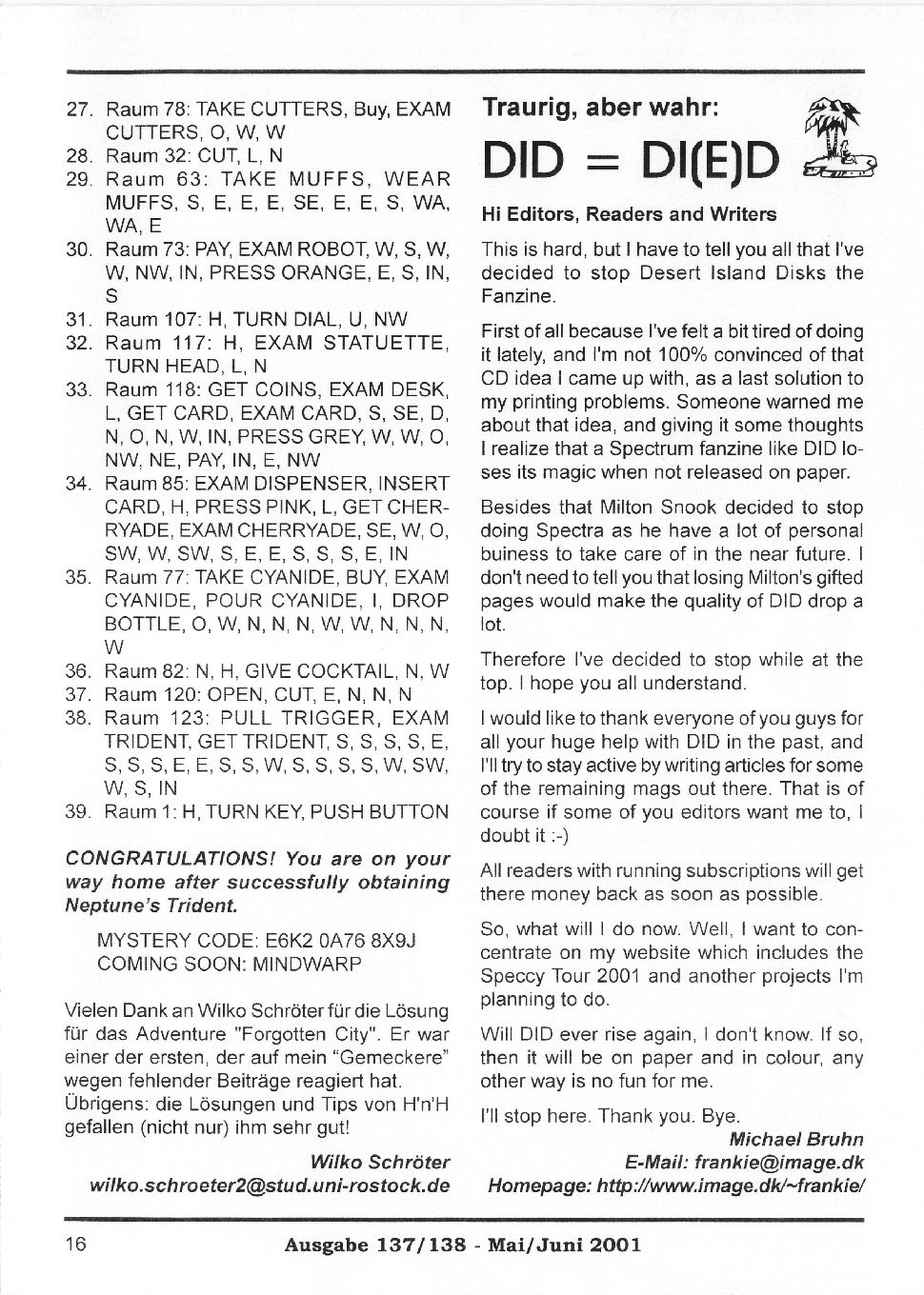 Magazine : SPC Magazin (German) Issue : 137 Page : 16 Date: May 2001 Medium : Paper Updated On : 2020-06-04 04:58:54 Hi-res : No 12...1415161718...3132