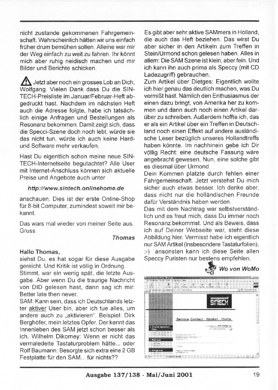 Magazine : SPC Magazin (German) Issue : 137 Page : 19 Date: May 2001 Medium : Paper Updated On : 2020-06-04 04:58:54 Hi-res : No 12...1718192021...3132