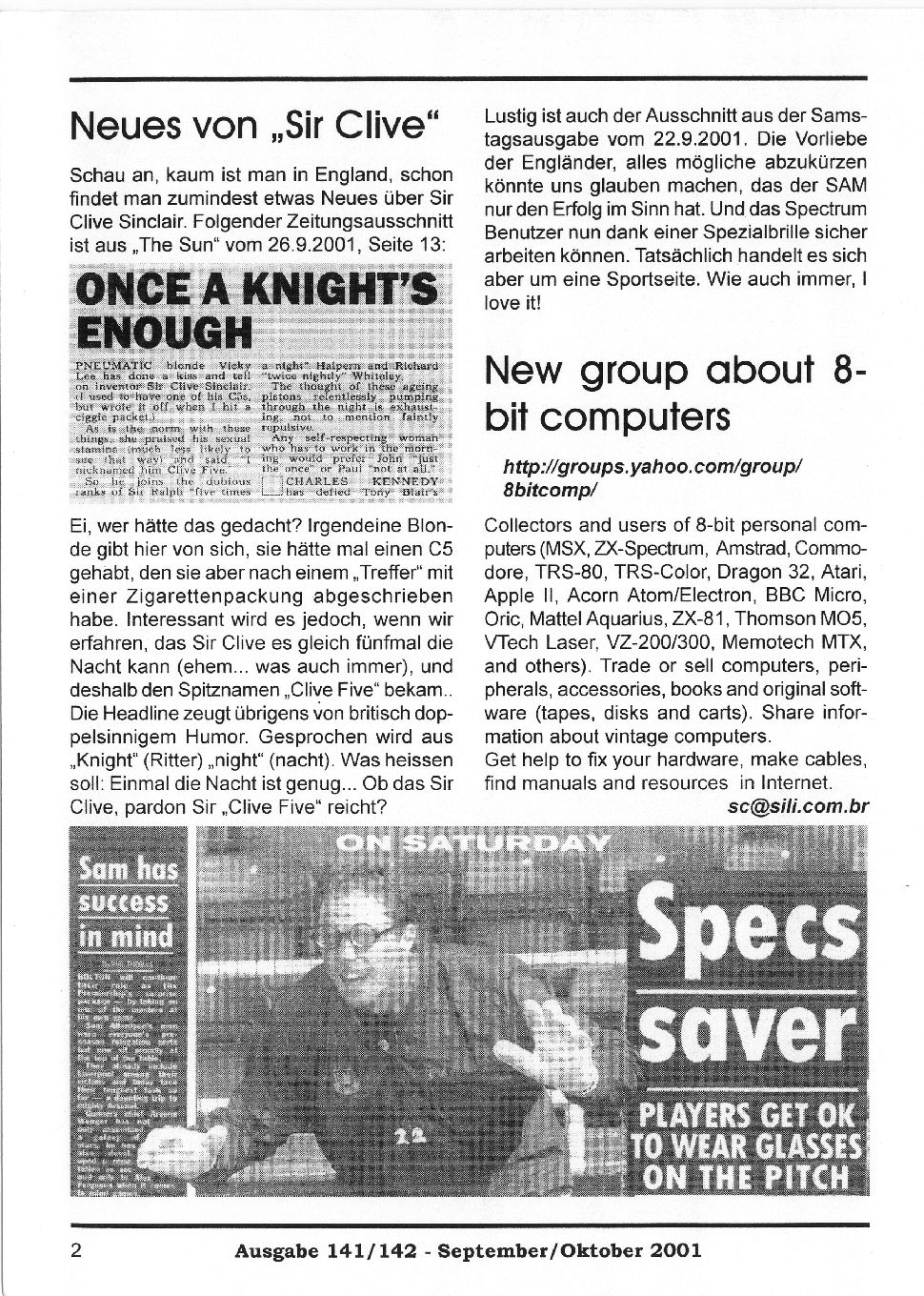 Magazine : SPC Magazin (German) Issue : 141 Page : 2 Date: September 2001 Medium : Paper Updated On : 2020-06-04 04:58:56 Hi-res : No 12345...3132