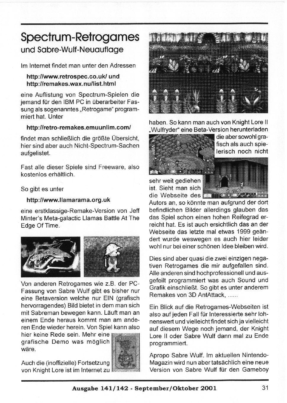 Magazine : SPC Magazin (German) Issue : 141 Page : 31 Date: September 2001 Medium : Paper Updated On : 2020-06-04 04:58:59 Hi-res : No 12...26272829303132