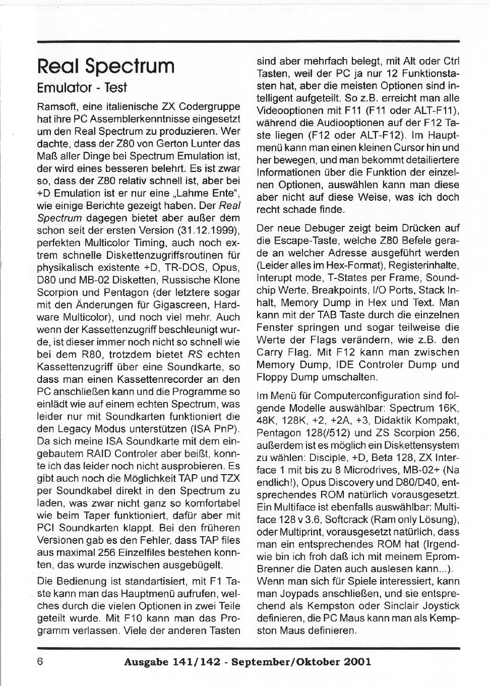 Magazine : SPC Magazin (German) Issue : 141 Page : 6 Date: September 2001 Medium : Paper Updated On : 2020-06-04 04:58:58 Hi-res : No 12...45678...3132