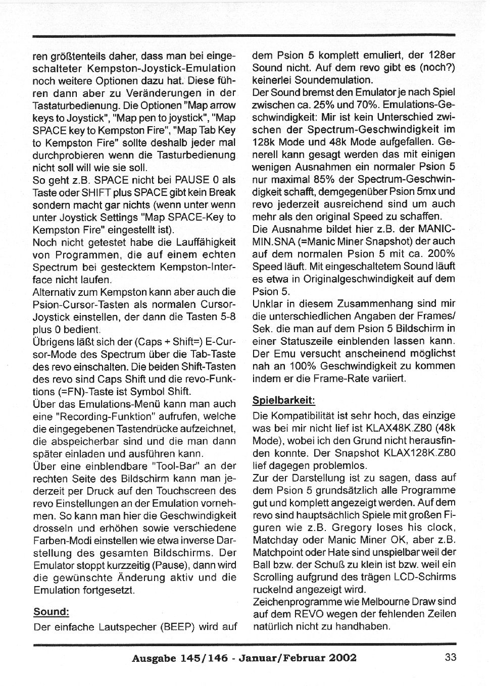 Magazine : SPC Magazin (German) Issue : 145 Page : 33 Date: January 2002 Medium : Paper Updated On : 2020-06-04 04:59:01 Hi-res : No 12...30313233343536