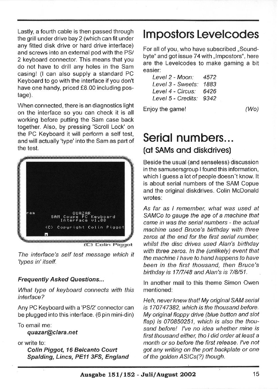 Magazine : SPC Magazin (German) Issue : 151 Page : 15 Date: July 2002 Medium : Paper Updated On : 2020-06-04 04:59:05 Hi-res : No 12...1314151617...3536