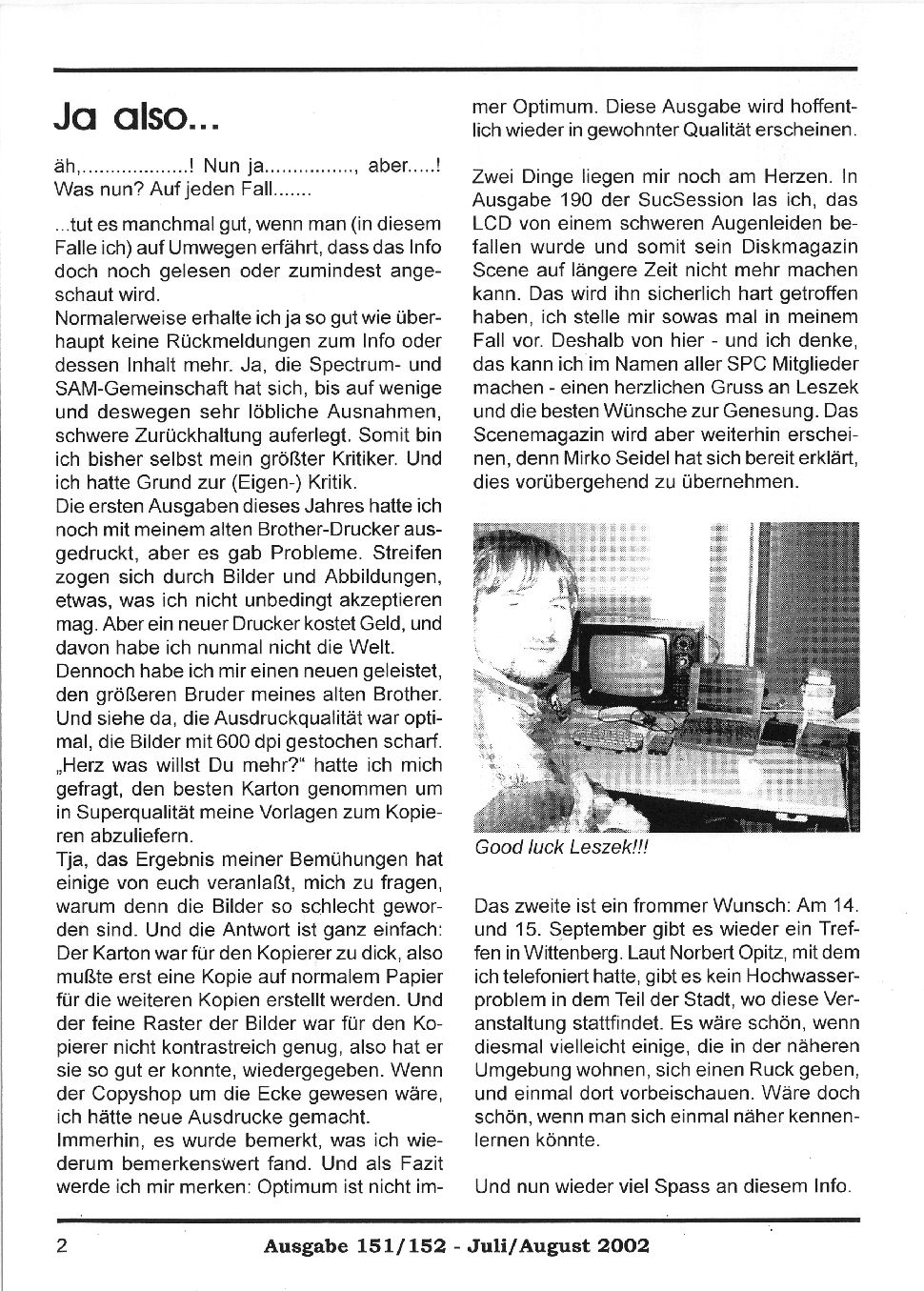 Magazine : SPC Magazin (German) Issue : 151 Page : 2 Date: July 2002 Medium : Paper Updated On : 2020-06-04 04:59:05 Hi-res : No 12345...3536