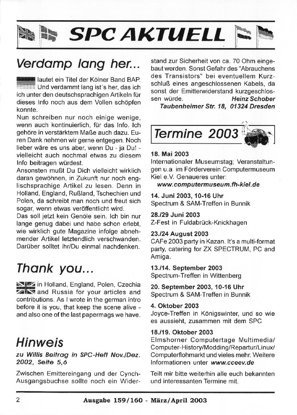 Magazine : SPC Magazin (German) Issue : 159 Page : 2 Date: March 2003 Medium : Paper Updated On : 2020-06-04 04:59:54 Hi-res : No 12345...3536