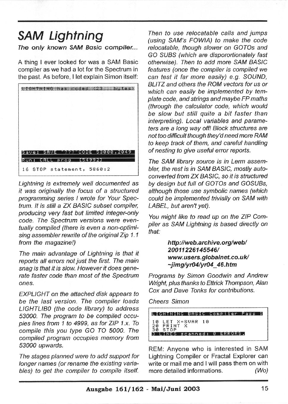 Magazine : SPC Magazin (German) Issue : 161 Page : 15 Date: May 2003 Medium : Paper Updated On : 2020-06-04 04:59:56 Hi-res : No 12...1314151617...3536