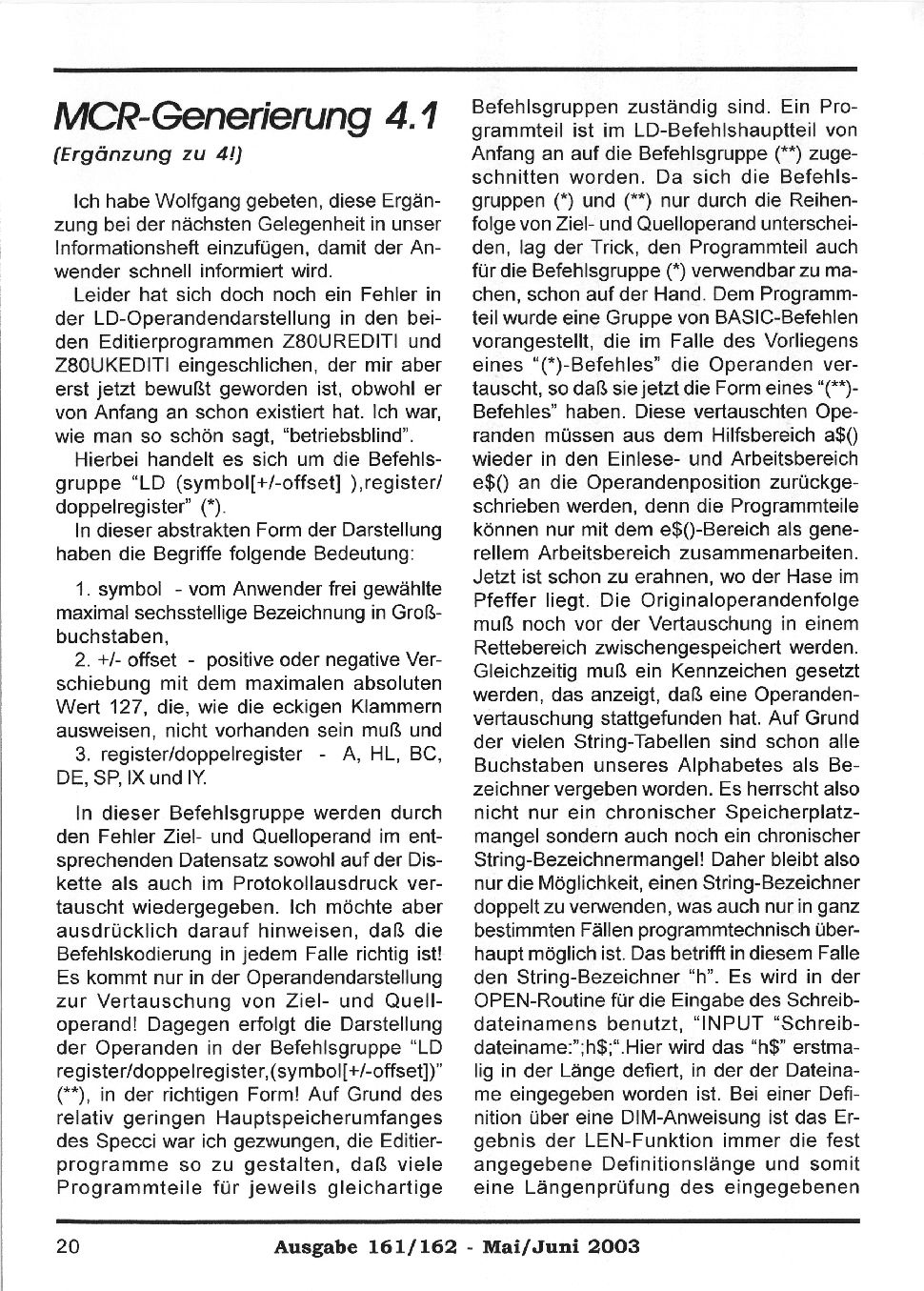 Magazine : SPC Magazin (German) Issue : 161 Page : 20 Date: May 2003 Medium : Paper Updated On : 2020-06-04 04:59:56 Hi-res : No 12...1819202122...3536