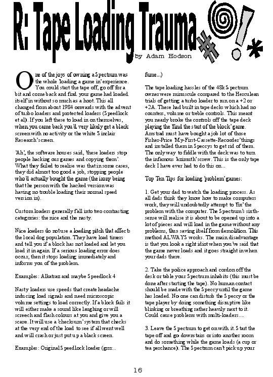 Magazine : The ZX Files (English) Issue : 5 Page : 16 Date: Medium : Paper Updated On : 2020-06-04 05:32:13 Hi-res : No 12...1415161718...4041