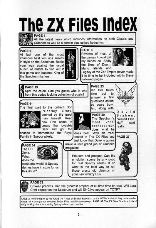 Magazine : The ZX Files (English) Issue : 7 Page : 2 Date: Medium : Paper Updated On : 2020-06-04 05:32:16 Hi-res : No 12345...3839