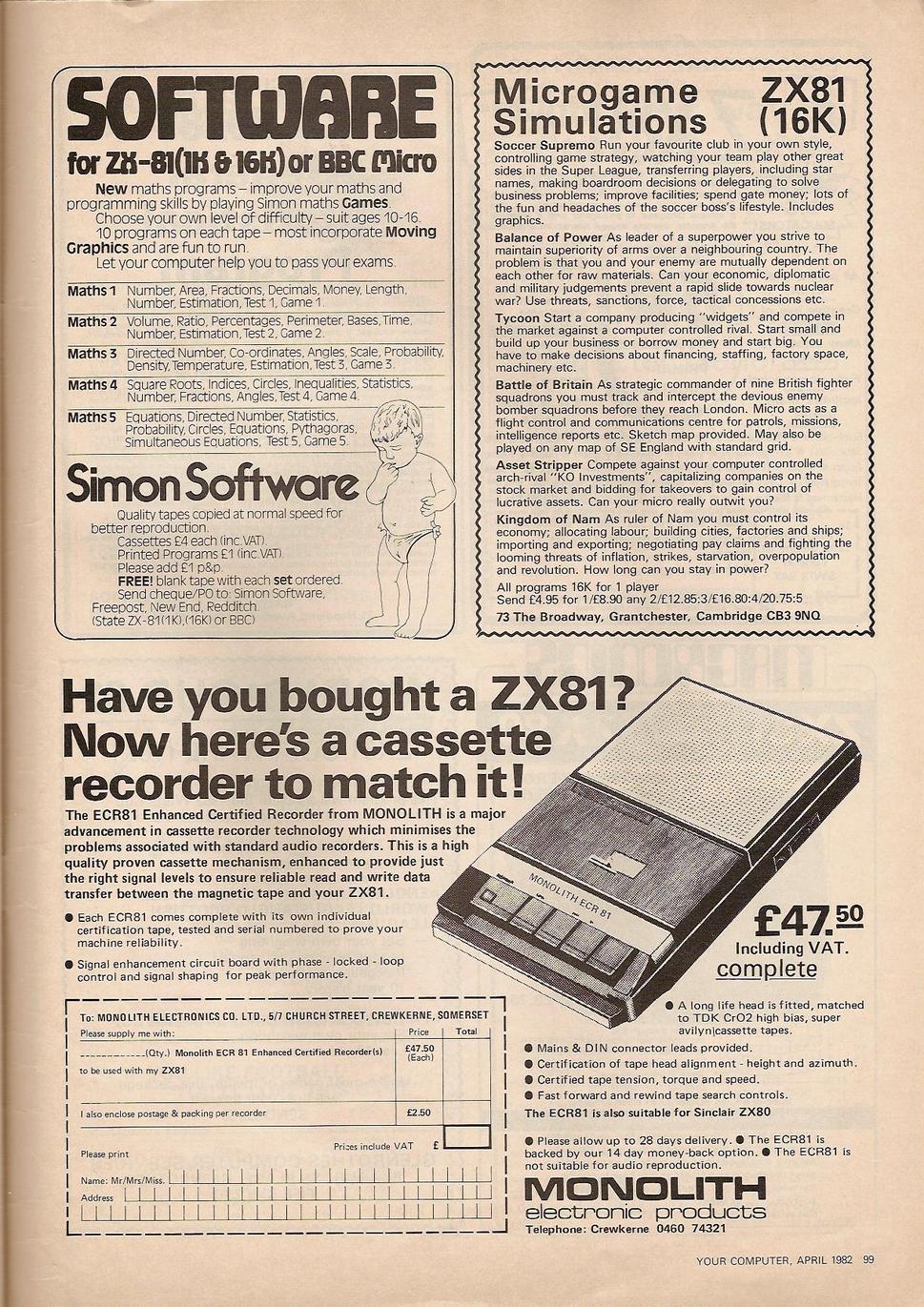 Magazine : Your Computer (English) Issue : 4 Page : 99 Date: April 1982 Volume: 2 Medium : Paper Updated On : 2020-06-04 05:09:11 Hi-res : No 12...979899100101...107108