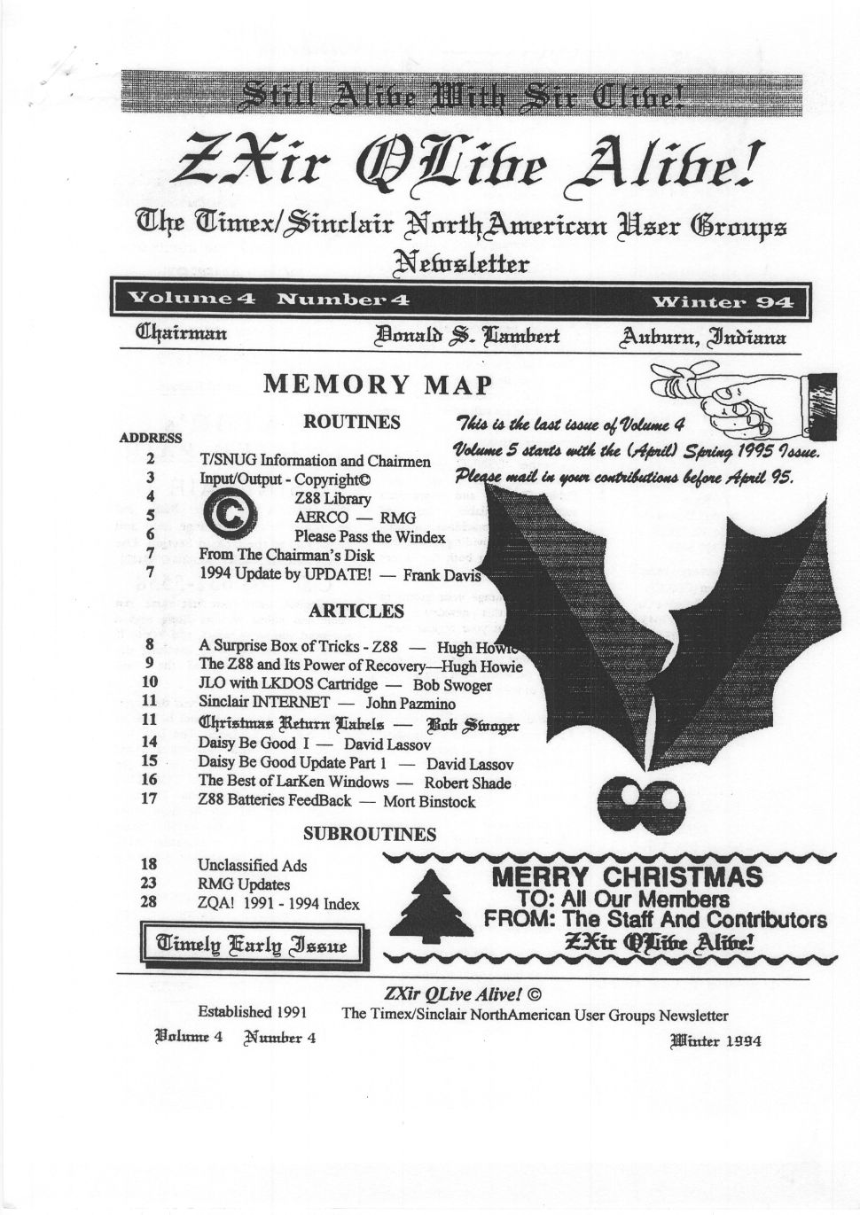 Magazine : ZXir QLive Alive (English) Issue : 4 Page : 1 Date: April 1995 Volume: 4 Medium : Paper Updated On : 2020-06-04 05:32:31 Hi-res : No 12345...1516