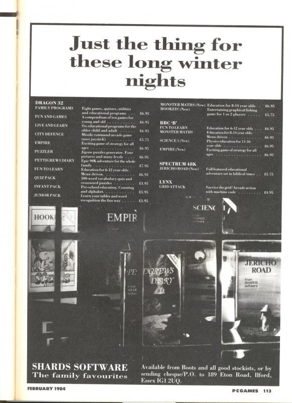 - Full-page ad -Shards Software - Just the thing for these long winter nights 113