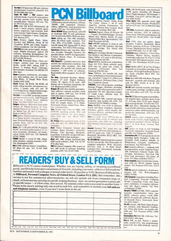 Magazine : Personal Computer News (English) Issue : 29 Date: Date: 28/9/1983 Medium : Paper Updated On : 2020-06-04 01:42:51 Pages Page: 1 Page: 1b Page: 1c Page: 2 Page: 3 Page: 4 Page: 5 Page: 6 Page: 7 Page: 8 Page: 9 Page: 10 Page: 11 Page: 12 Page: 13 Page: 14 Page: 15 Page: 16 Page: 17 Page: 18 Page: 19 Page: 20 Page: 21 Page: 22 Page: 23 Page: 24 Page: 25 Page: 26 Page: 27 Page: 28 Page: 29 Page: 30 Page: 31 Page: 32 Page: 33 Page: 34 Page: 35 Page: 36 Page: 37 Page: 38 Page: 39 Page: 40 Page: 41 Page: 42 Page: 43 Page: 44 Page: 45 Page: 46 Page: 47 Page: 48 Page: 49 Page: 50 Page: 51 Page: 52 Page: 53 Page: 54 Page: 55 Page: 56 Page: 57 Page: 58 Page: 59 Page: 60 Page: 61 Page: 62 Page: 63 Page: 64 Page: 65 Page: 66 Page: 67 Page: 68 Page: 69 Page: 70 Page: 71 Page: 72 Page: 73 Page: 74 Page: 75 Page: 76 Page: 77 Page: 78 Page: 79 Page: 80 Page: 81 Page: 82 Page: 83 Page: 84 Page: 85 Page: 86 Page: 87 Page: 88 Page: 89 Page: 90 Change Request You can request changes or additions here. You can upload files. All change requests are actioned as quickly as possible and you will be informed of the result. Details Files Your Name * Email * Details Your browser doesn't have Flash, Silverlight or HTML5 support. Submit Thank you for your change request. We will respond as soon as possible.