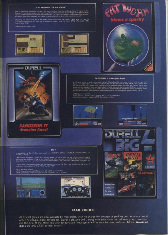 - Two-page ad -Durell Software - Thanatos + Deep Strike + Sigma 7 + Fat Worm Blows A Sparky + Saboteur II + Big 4 88